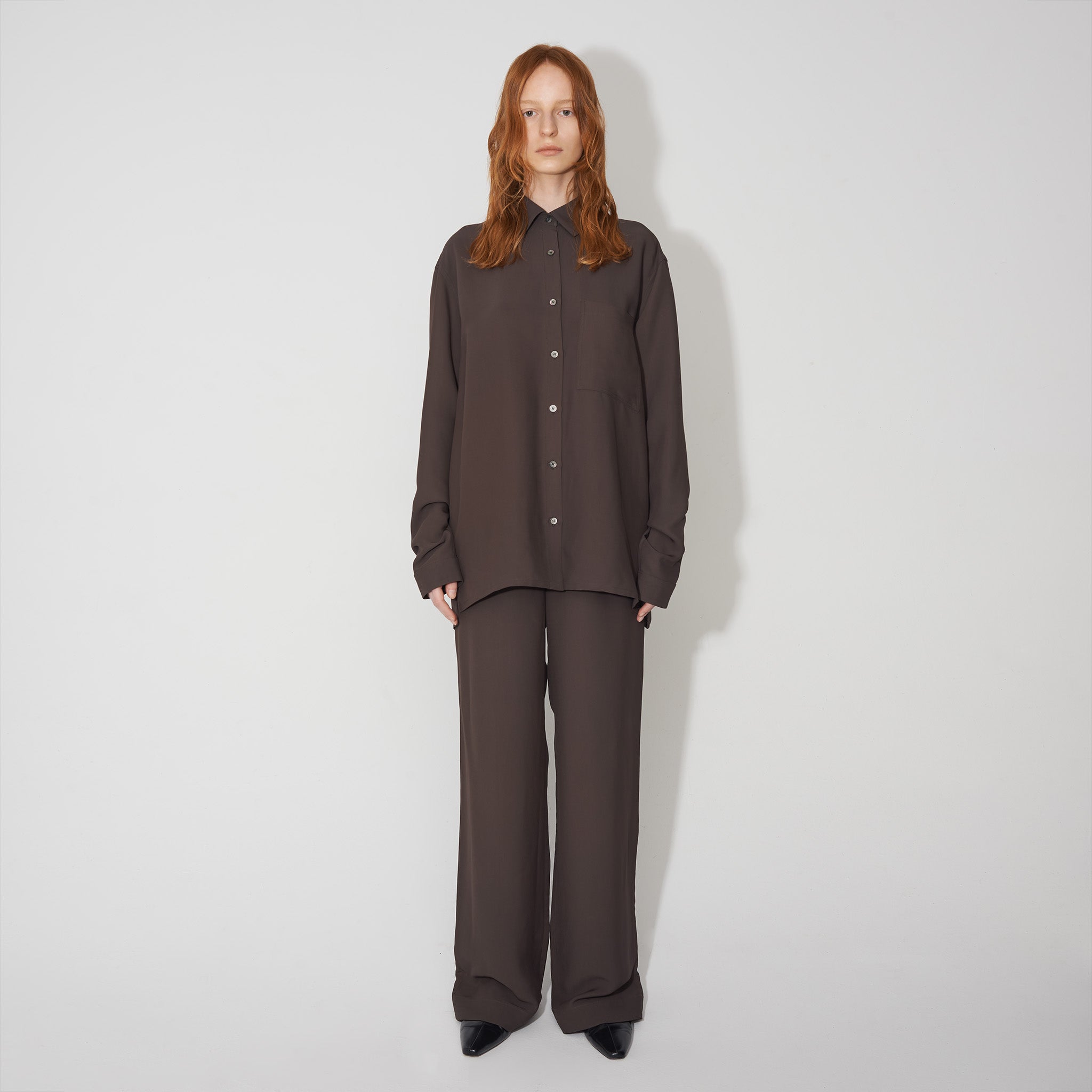 Dive back into memories of cushioning comfort with this fluid pyjama shirt, without overlooking its high styling potential. Day or night its soft touch will make you feel grounded and relaxed.